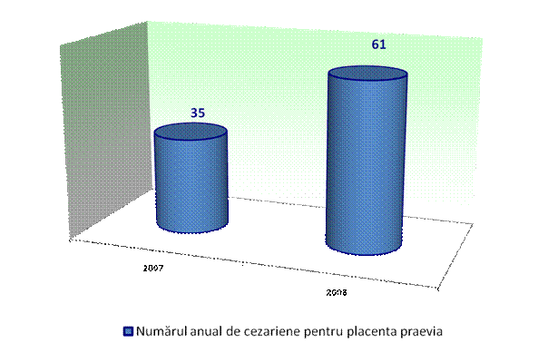 Grafic 13. Evolutia anuala a numarului de placenta praevia, ca indicatii pentru cezariana,