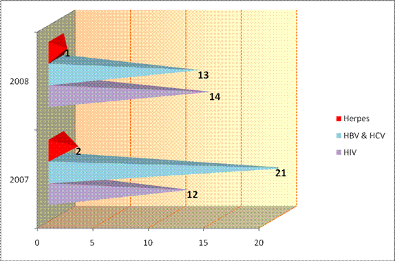 Grafic 18. Distributia anuala a numarului de cazuri cu infectii virale, ca indicatii pentru cezariana,