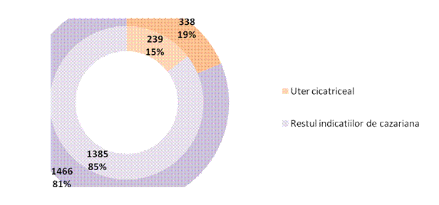 Grafic 19. Ponderea anuala a numarului de cazuri cu uter cicatriceal, ca indicatii pentru cezariana,
