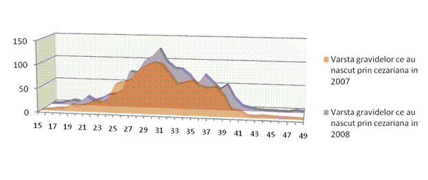 Grafic 20. Distributia anuala pe varsta a parturientelor ce au nascut prin operatie cezariana, in perioada 2007-2008, in cadrul Spitalului de Obstetrica-Ginecologie „Prof. Dr. Panait Sirbu” din Bucuresti
