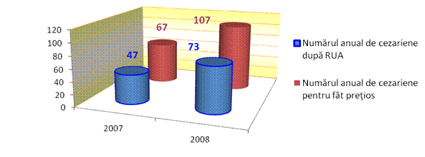 Grafic 21. Evolutia anuala a numarului de cezariene dupa RUA, respectiv pentru fat pretios,