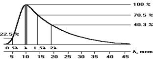 de la 27 – 370C, maximul curbii spectrale se deplaseaza cu 0, 3 mcm