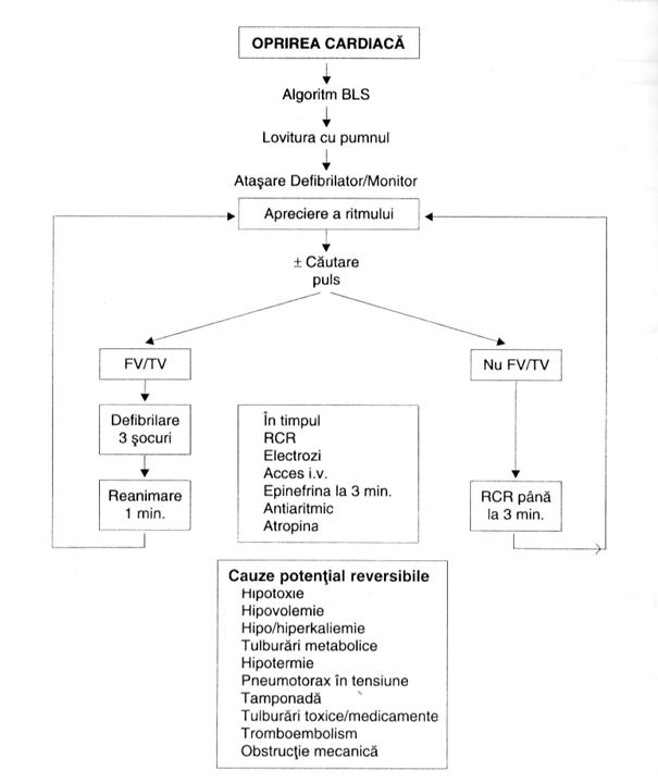 Schema terapeutica pentru FV/TV fara puls, asistolie si