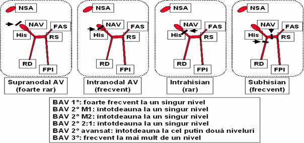 combinatii câte 2 ale celor 4 blocuri fasciculare (inclusiv blocul fasc. His); în BAV 1° asociat cu un bloc intraventricular este necesarå investigatia invazivå pentru identificarea sediului blocului