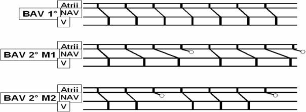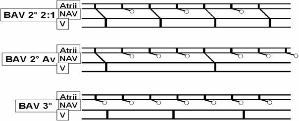 2:1: bradicardie sinusalå (aparent) cu frecven¡å care se poate dubla dupå administrare de atropinå sau dupå un efort fizic usor