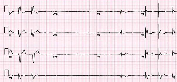 interval PR < 0,12" (segment PR scurt sau absent)