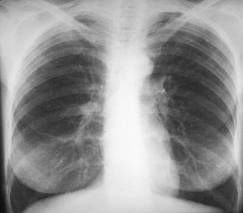 - modificari în parenchim: transudatele alveolare determina aparitia de opacittati cu localizare mediopulmonara si bazala de intensitate slaba.