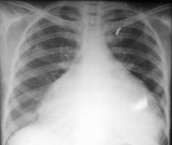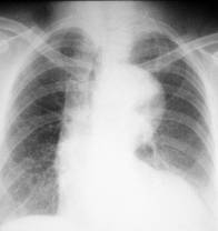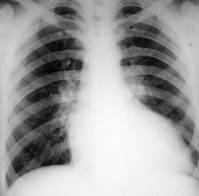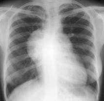 - dilatarea AS Prin examinarea esofagului cu pasta baritata se poate aprecia mai bine aceasta micsorare în grade variabile a spatiului retrocardiac (gradul I - amprenta a atriului pe conturul anterior al esofagului; gradul II - împingerea esofagului pâna la coloana vertebrala; gradul III - esofagul este împins posterior, dincolo de fata anterioara a corpilor vertebrali). Uneori atriul stâng apare în interiorul siluetei cardiace constituind conturul dublu concentric.