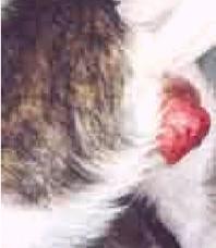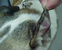 Debutul bolii în urmă cu 4 zile. Animalul se scarpina insistent peste urechi de cca. 1 saptamâna. De 4 zile a aparut o umflatura pe urechea dreaptă care stă pleostită (nu mai poate fi ridicată voluntar, atârnă).