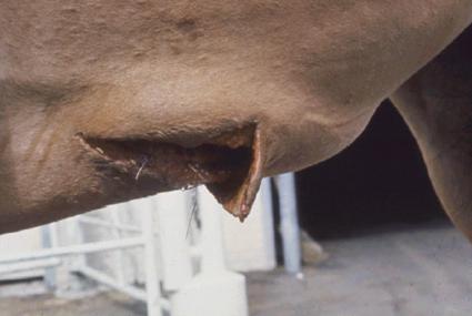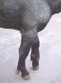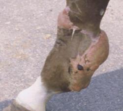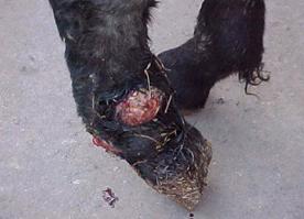 A venit lovita de la pasune acum 3 saptamâni. Piciorul a fost mai umflat decât în prezent. Din rana se scurge puroi. Animalul refuza sa se mai deplaseze si sa mai consume furaje.