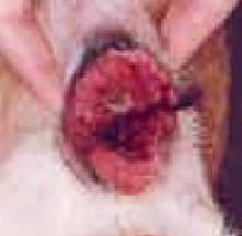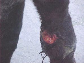 A fost gasita pe pasune, în urma cu 6 luni, cu o plaga de cca 4-5 cm, în zona fluierului la membrul posterior drept. De atunci s-a observat o crestere lenta în volum a plagii, ajungând la aspectul prezentat în imaginile urmatoare.