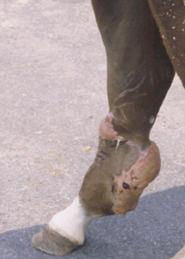 Debutul bolii in urmă cu 2-3 saptamâni. Animalul schiopătă uneori de piciorul drept anterior. schiopatura alterneaza cu intervale de timp în care mersul este normal (1-2 zile) apoi revine la un mers schiopatat.