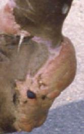 schiopatura gradul III – IV membrul stâng anterior. Local tot piciorul este tumefiat, dureros, tumefactia este fluctuent-pastoasa, calda.