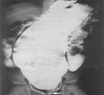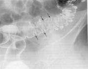 n modificari ale mucoasei: aspect granular, fin sau grosolan, care este evident numai pe radiografia de fata. La o examinare mai atenta, se observa ca acest aspect este format din puncte fine si inele care corespund ulceratiilor superficiale si insulelor de edem al mucoasei.