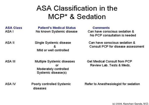 Nivelul de sedare poate fi cuantificat dupa scorul Ramsay de evaluare a sedarii: 1- pacient anxios si agitat /nelinistit, sau ambele; 2 - pacientul coopereaza, este orientat si linistit; 3 - pacientul raspunde numai la comenzi; 4 - pacientul prezinta un raspuns promt la stimuli mecanici si auditivi puternici; 5 - pacientul prezinta un raspuns slab la stimuli mecanici si auditivi puternici; 6 - pacientul nu prezinta nici un raspuns.