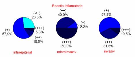 Reactia inflamatorie apreciata semicantitativ a fost de intensitate maxima în cazul carcinomului microinvaziv, probabil si în legatura strânsa cu realizarea swichului angiogenic.