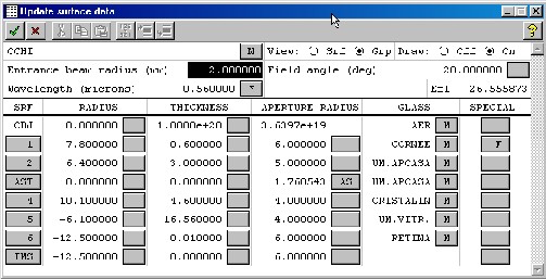 Figura I.2.1. Introducerea datelor de intrare ale sistemului optic