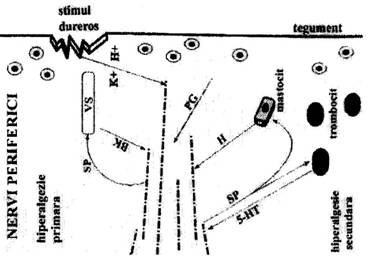 agentului lezional (stimul nociceptiv), asa numitul fenomen de hiperalgezie primara. Fenomenele initiale, hiperalgezia