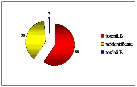 Din aceste date se observa ca in Romania are o larga raspandire Clostridium botulinum de tip B. Infectiile cu toxina A si toxina E nu sunt specifice pentru tara noastra. Cele 3 cazuri de infectie cu toxina A au fost identificate intr-un focar familial in anul 1994. Toxina de tip E a fost identificata la doi pacienti, unul in anul 1998 si celalalt in anul 2007, asociata in ambele cazuri consumului de peste.