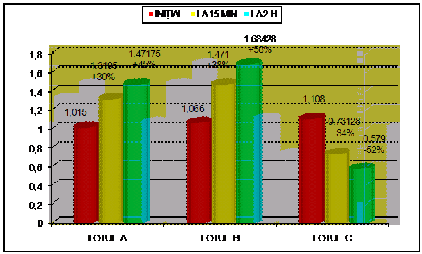 Fig. 1 Activitatea AC din hematii: initial, la 15 minute si la