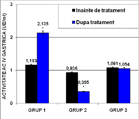 Fig.2 - Modificarile activitatii AC IV gastrice la grupele studiate