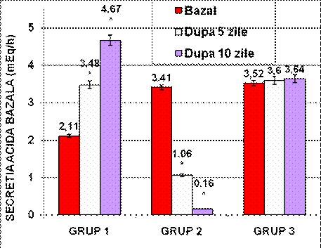 Fig. 3 - Modificarile secretiei gastrice acide bazale la grupele studiate