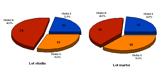 Īn ambele loturi de studiu au predominat stadiile III si IV de boala.