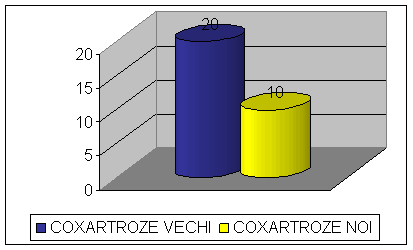 Dintre cei 30 de bolnavi luati in studio, 20 aveau coxartroze primitive vechi, cu diagnosticul confirmat in urma mai multor internari anterioare. Din aceasta categorie, 4 au fost supusi interventiei chirurgicale de implantare de proteza totala de sold si au fost internati pentru recuperare. Ceilalti 10 au fost diagnosticati cu coxartroza primitiva incipienta, 6 din ei fiind la prima internare.