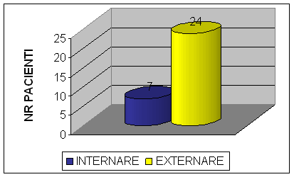 Daca la inceput in clasa I de gravitate s-au incadrat 10 bolnavi ceea ce reprezinta 33,33%, deci aproximativ o treime din lot, 12 pacienti s-au incadrat in clasa a II-a de gravitate (40%) si numai 8 s-au incadrat in clasa a III-a prezentand urme usoare de boala.