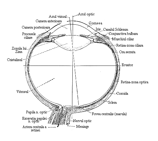 Ecuatorul este circumferinta cea mai mare a globului ocular si împarte globul în doua jumatati (emisfere).