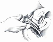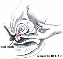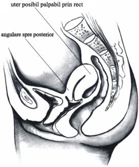 - localizarea colului uterin (cu indexul māinii drepte inserat īn vagin, dupa lubrifiere cu apa);