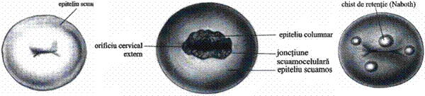 - inspectia colului uterin si a ostiului sau (culoare, pozitie, caracteristici ale suprafetei; apoi, ulceratii, noduli, mase, sāngerari, scurgeri);