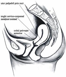 Raportul dintre corpul si colul uterin → unghi de flexiune (normal anteroflexie de 140-170°).