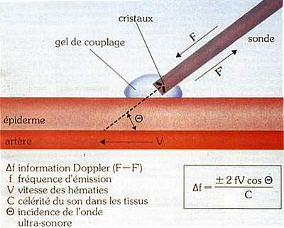 Utilizeaza decalajul de frecventa a fluxului care vine sau pleaca de la o sonda creion pentru a creia un semnal audio si osciloscopic proportional cu vitezele elementelor figurate ale sangelui. Furnizeaza informatia hemodinamica de baza.