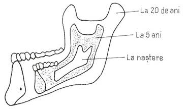 corpul mandibulei prezinta o crestere in largime mai rapida decat restul.