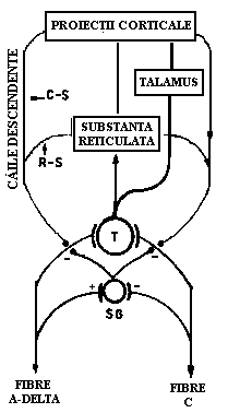 Fig. nr. IV.2. Reprezentarea schematica a controlului aferentelor de durere prin mecanismul "portii".
