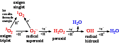Fig. 2 Schema de reducere a oxigenului la apa prin intermediul de specii reactive