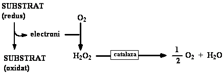 unde R este fie un hidrogen, fie un radical alchil sau o grupa acil si HQOH este un donor de doi electroni. Catalaza prelucreaza peroxidul de hidrogen (H2O2) printr-o reactie de disproportionare: