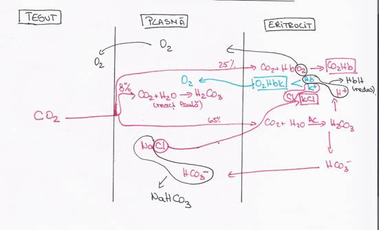 În refacerea cantitatii de bicarbonat de Na, un rol important îî revine unui fenomen: FENOMENUL DE MEMBRANĂ HAMBURGER (fenomen de migrare a ionului de Cl):