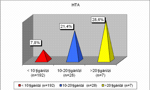 În schimb între intensitatea fumatului, exprimata prin numarul de tigari fumate zilnic si prevalenta HTA exista o relatie de directa proportionalitate.
