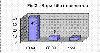 Adultii cu vârste cuprinse între 18 si 64 de ani au fost mai frecvent afectati - 40 cazuri (78,4%), urmati de adultii cu vârste între 65 si 88 de ani - 6 cazuri (11,7%) si copii - 5 cazuri (9,9%).