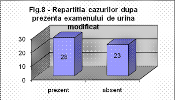 Examenul de urina a fost modificat la 23 pacienti (45%), la restul de 28 pacienti (55%) a fost prezent doar tabloul clinic.