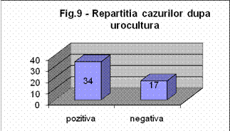 Urocultura a fost semnificativa pentru 34 cazuri (66,7), pentru restul de 17 cazuri (33,3%) urocultura a fost negativa .