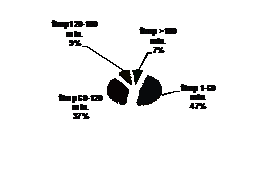 Graficul nr. 6 ne arata diverse procente relative la media timpului de stationare în UPU, prin luarea în calcul a câteva intervale de timp, stabilite arbitrar. Se observa ca cel mai mare procent îl constituie cei care au stationat între 1-60 minute (47 % - 154 pacienti), urmat de cei care au stationat în UPU între 60-120 minute (37 % - 120 pacienti). Timpul de stationare presupune timpul de la intrarea în UPU pâna la internarea pe sectie, incluzând timpul de consultatie, cel necesar pentru recoltarea de analize si procedurile efectuate în UPU (IOT, sondaj vesical, tratamente chirurgicale etc.) si timpul necesar investigatiilor imagistice (radiografii, ecografii, tomografii etc).