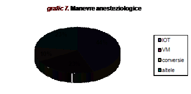Graficul nr. 4 ilustreaza distributia principalelor categorii diagnostice care s-au luat în studiu. Astfel, cele mai multe cazuri sunt reprezentate de come, de etiologii diverse cum ar fi: come vasculare, traumatice, prin intoxicatii medicamentoase etc.), adica un numar de 125 de pacienti (38%), urmate de cazurile etichetate ca "trauma" - în aceasta categorie intrând: politraumatismul, traumatismele cranio-cerebrale, fracturile de femur, fracturile deschise, etc. În aceasta ultima categorie au fost cuprinsi 75 de pacienti (23%). La pacientii în stare comatoasa AG iv s-au folosit de cele mai multe ori pentru efectuarea IOT (diazepam 10-20 mg iv, dormicum 5-10 mg iv, tiopental 100-200 mg iv) si pentru tratamentul convulsiilor - fie a celor tonico-clonice, fie a celor focale de tipul jacksonian (diazepam 5-10-15 mg iv).(4). Un numar semnificativ de pacienti - 47 (14%) a necesitat conversia electrica pentru diverse aritmii cardiace, precum fibrilatia atriala paroxistica, flutter atrial cu transmitere înalta, tahicardii ventriculare sustinute. Pentru aceste proceduri s-au administrat diazepam10-15 mg iv, dormicum 5-10 mg iv, propofol 1,5-2 mg/kg iv (100-150 mg) si tiopental 2-3 mg/kg. Dintre AG iv folosite pentru patologia convulsivanta cel mai frecvent a fost utilizat diazepamul, în doze de 10-20 mg iv si tiopentalul în doze de 2-3 mg/kg ,cu doze cuprinse între 150-700 mg iv (doza totala).