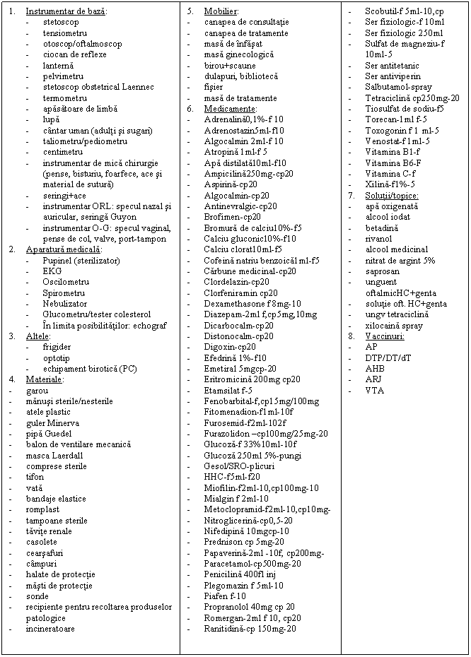 ELEMENTE DIN DOTAREA MINIMĂ A DISPENSARULUI MEDICAL