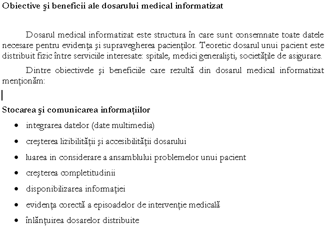 beneficii ale dosarului medical informatizat " stilul Heading 2, iar