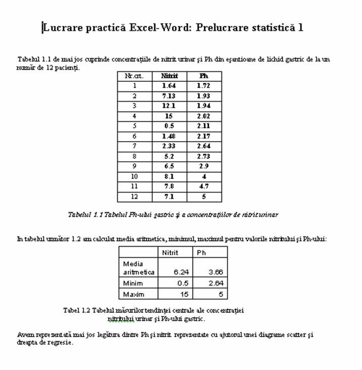 Tabelul 1.1 Tabelul Ph-ului gastric si a concentratiilor de nitrit urinar