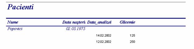 Corporate. Raportul se va numi Pacienti si va avea forma:
