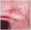 Istoricul bolii: leziunea a aparut in urma cu 3 ani sub forma tumorala care a crescut lent pana la dimensiunile de 1/1 cm.